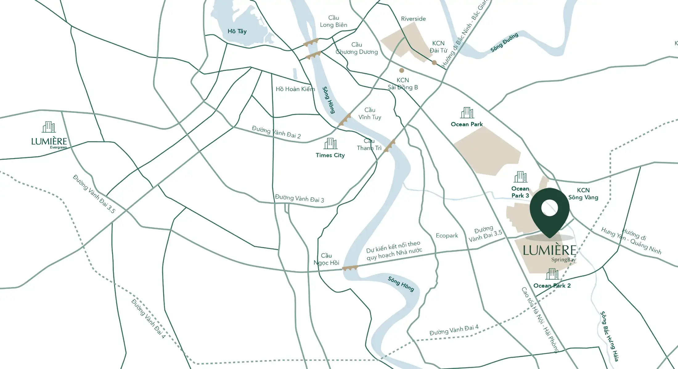LUMIÈRE SpringBay toạ lạc tại trái tim Ocean Park 2, Ocean City. Vị trí chiến lược đảm bảo kết nối thuận tiện: